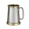 The Personalised Polished Pewter Tankard with Brass Detailing is handmade by our master pewtersmiths with smart brass detailing at lip and base.